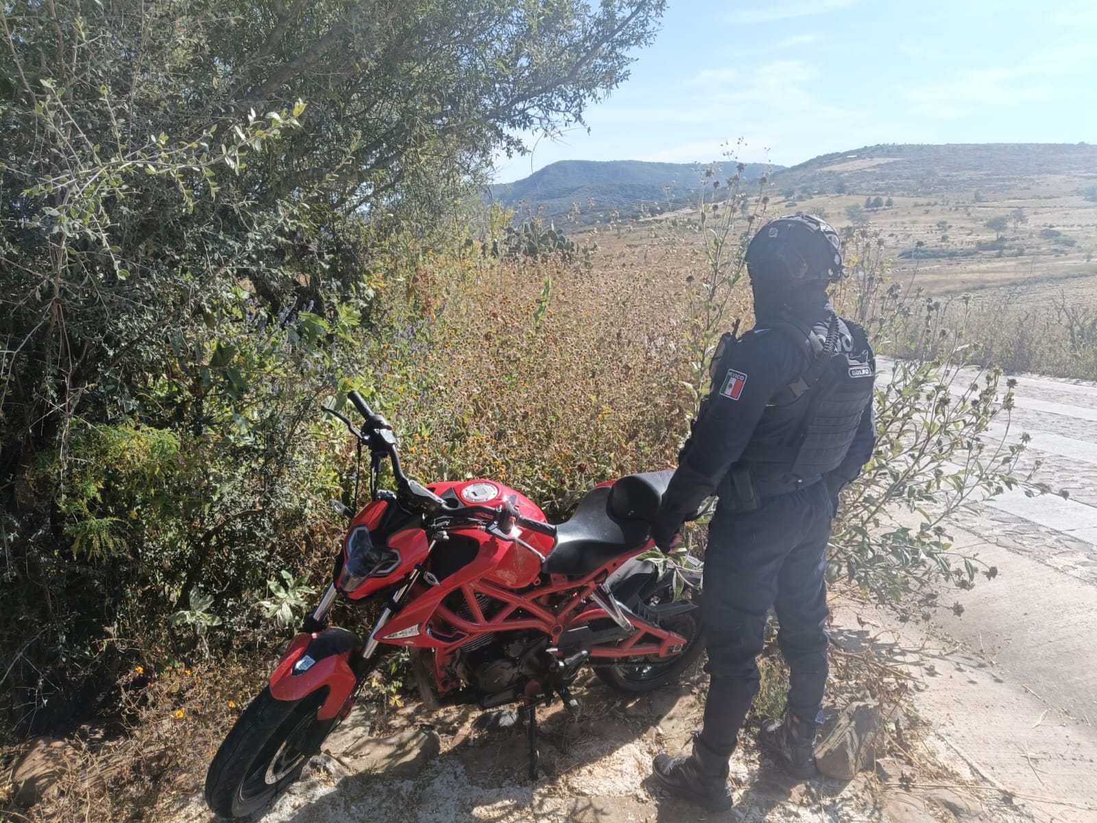 Asimismo, se logró la recuperación de una motocicleta con reporte de robo vigente, localizada en la carretera estatal, a la altura del kilómetro 11+500, cerca de la desviación al Zarco. El vehículo fue asegurado y puesto a disposición de las autoridades correspondientes.
